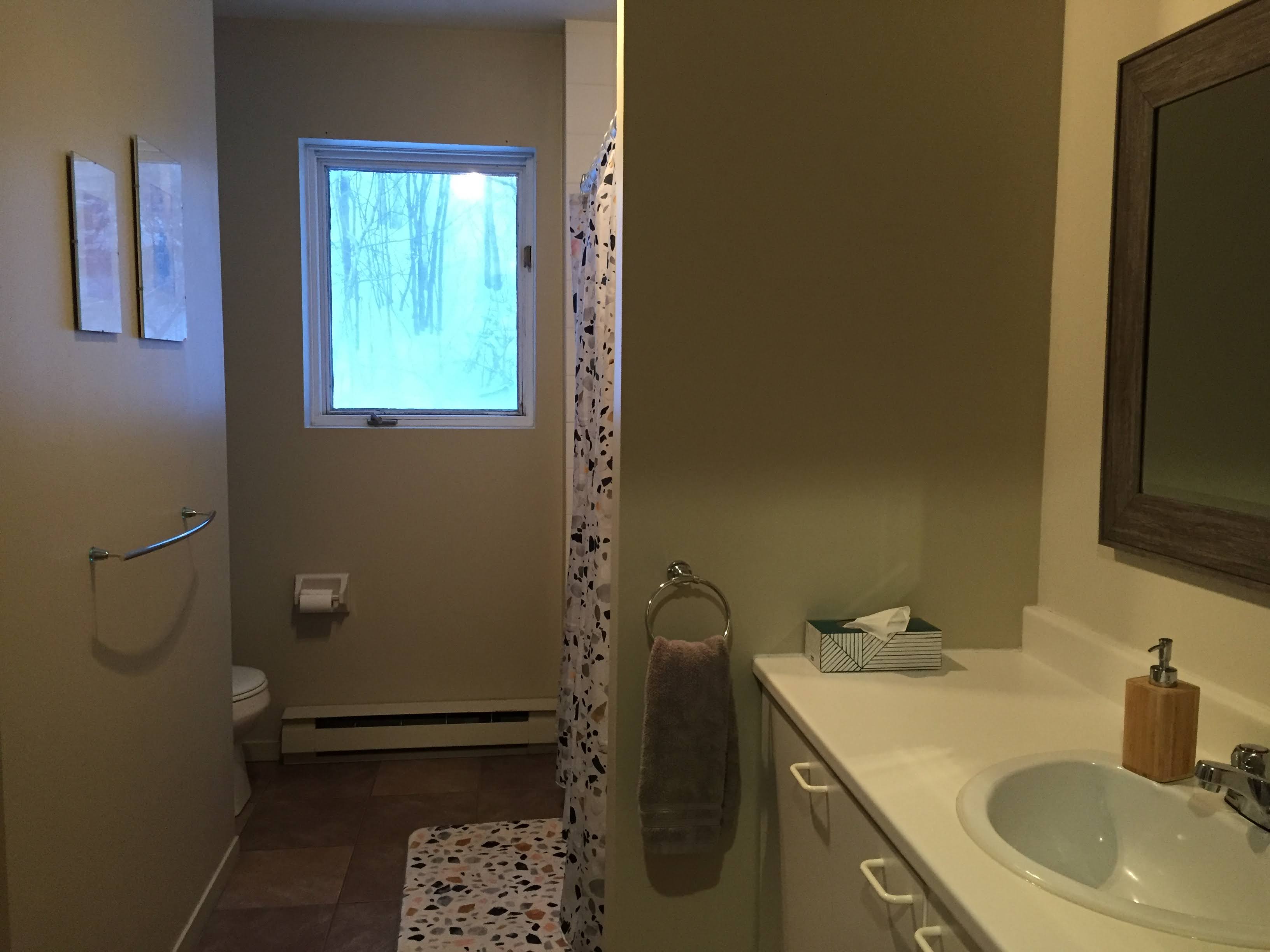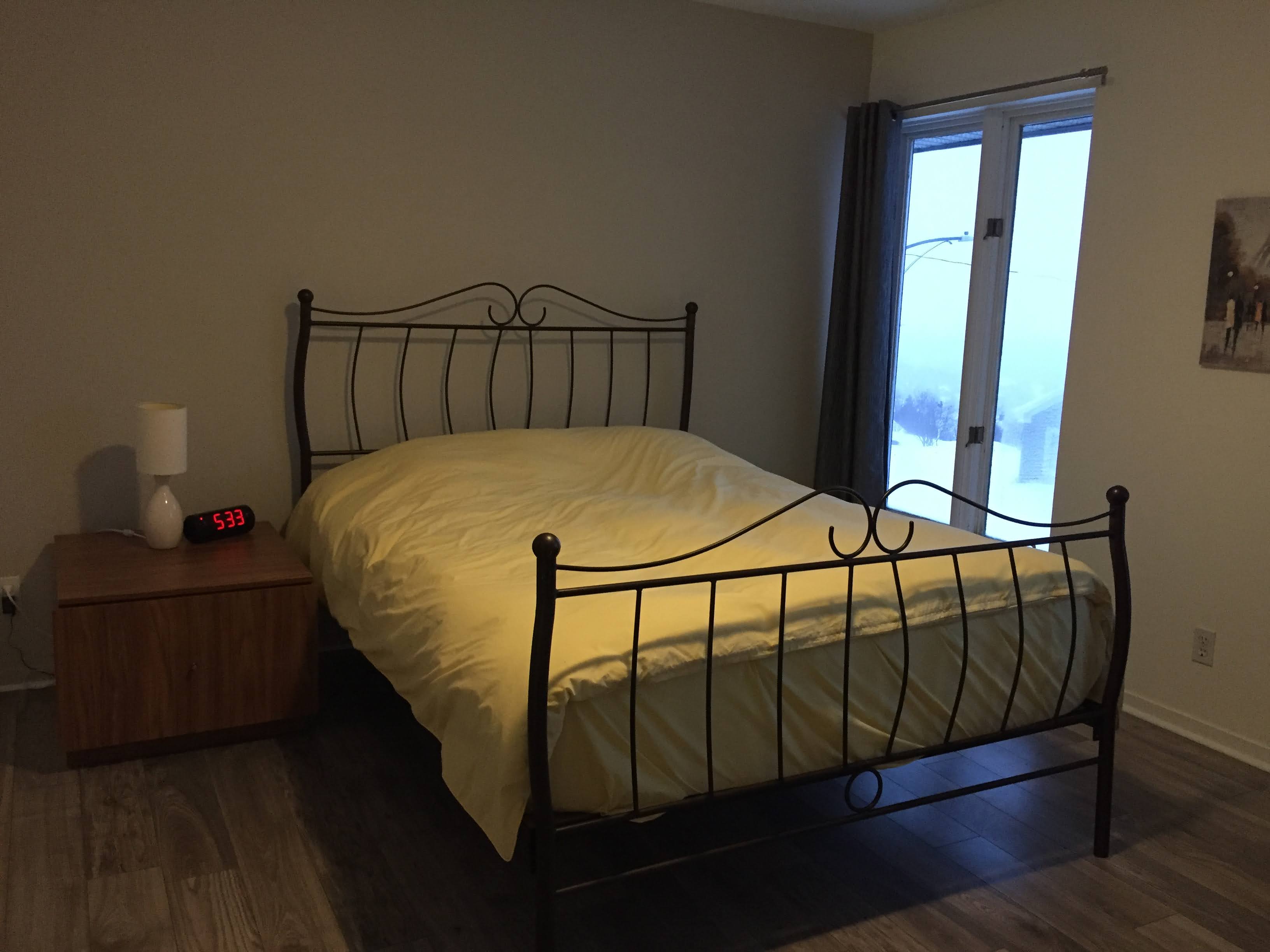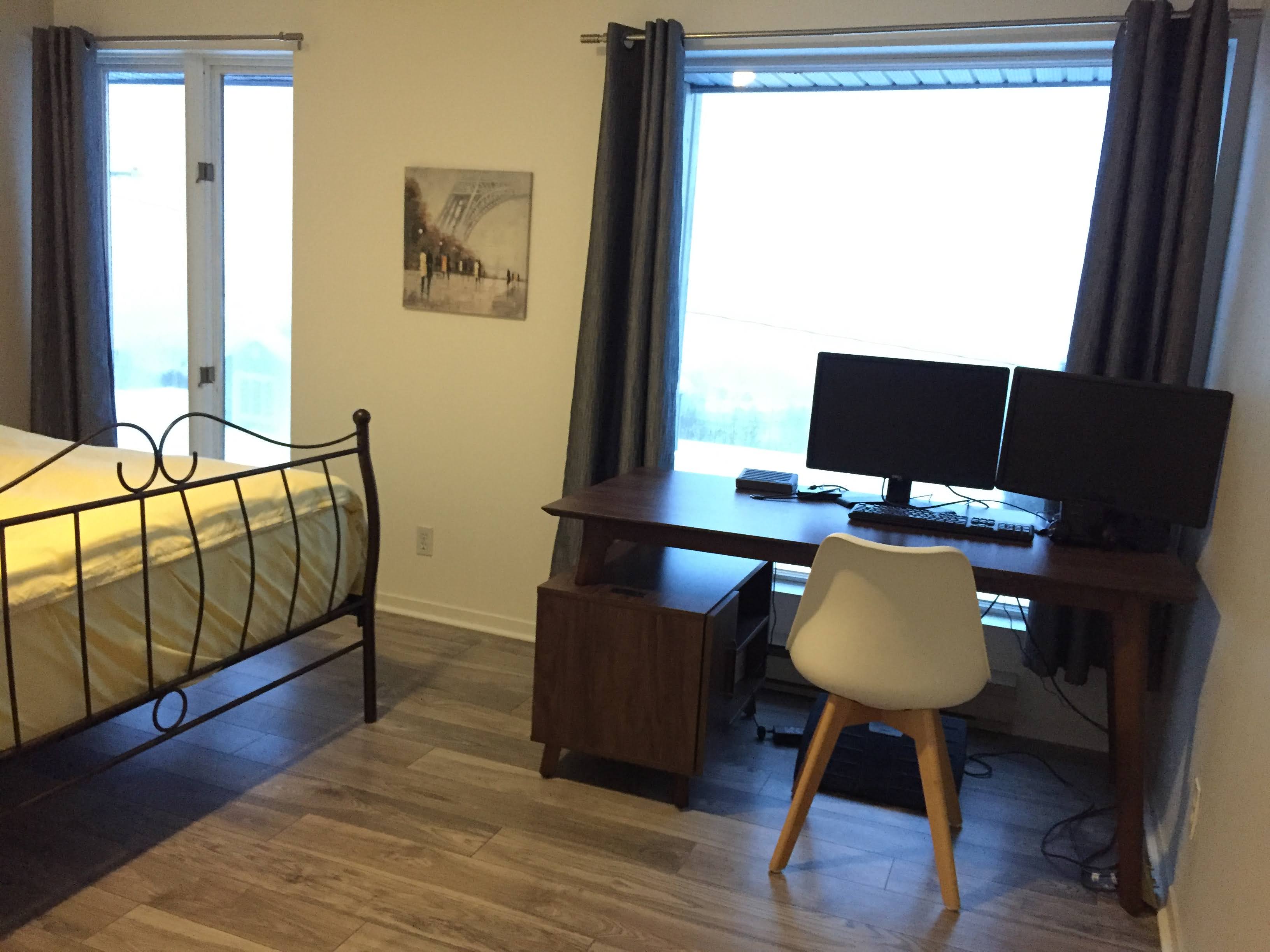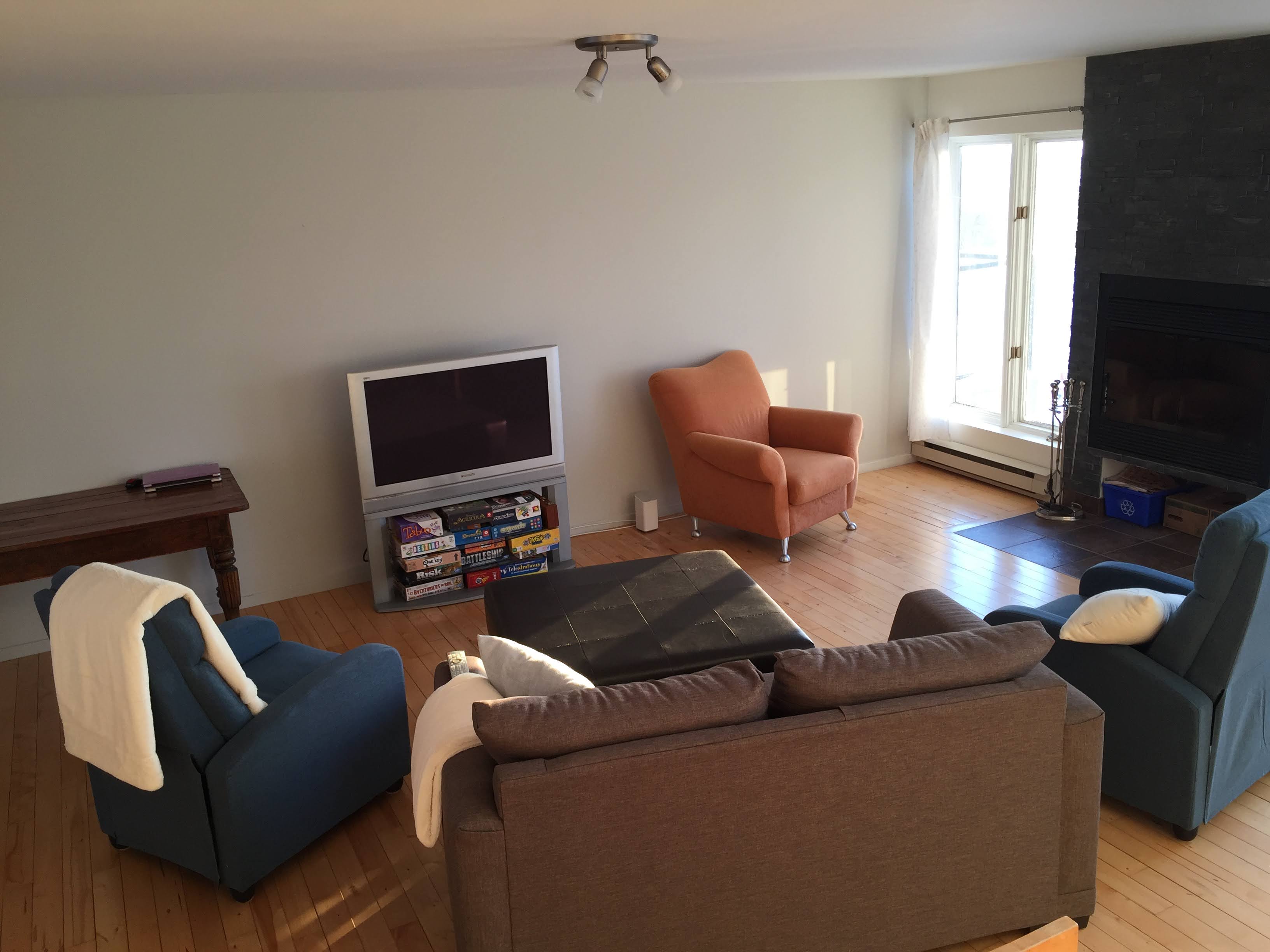 - Au 2e étage : chambre des maîtres avec espace bureau et lit queen, 2e chambre avec lit queen et lit double (escamotable), salle de bain.